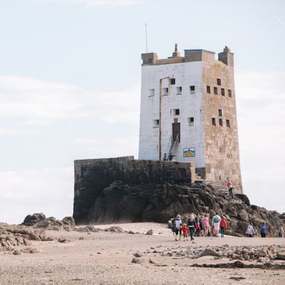Eine Wattwanderung zu diesem historischen Turm, der fast zwei Meilen vor der Küste steht, ist ein einzigartiges Abenteuer. Der Seymour Tower aus dem 18. Jahrhundert steht inmitten eines von der Ramsar-Konvention anerkannten Feuchtgebietes von internationaler Bedeutung – halten Sie auf dem Weg durch diese mondähnliche Wattlandschaft unbedingt Ausschau nach winzigen Porzellankrabben, Anemonen und Kissensternen. Haben Sie immer Ihre Sicherheit im Hinterkopf, wenn Sie die Gezeitenlandschaften von Jersey erkunden. Es ist ratsam, sich nur mit einem erfahrenen Guide auf den Weg zu machen.