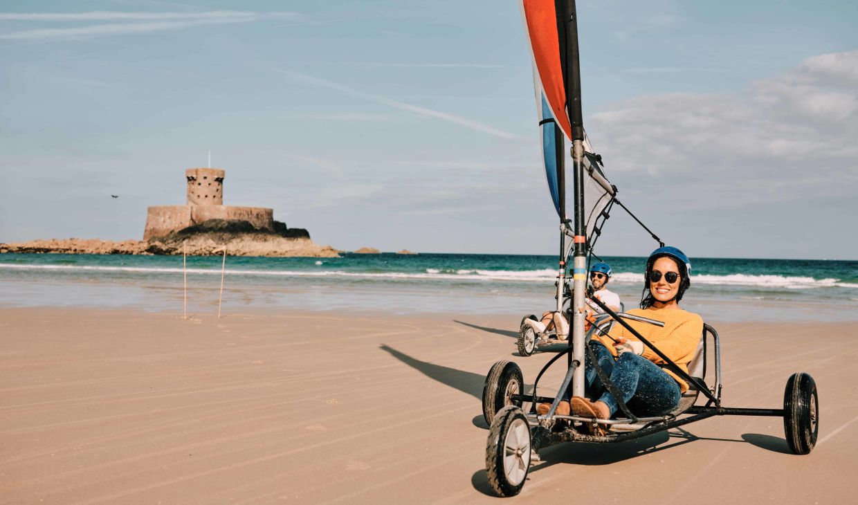 Man nehme einen breiten Sandstreifen bei Ebbe und füge einen guten Westwind hinzu, der vom Atlantik hereinweht – schon hat man die Zutaten für eine adrenalingeladene Hochgeschwindigkeits-Blokart-Fahrt in der Bucht von St. Ouen. Diese Strandsegler im Go-Kart-Stil werden wie ein Fahrrad gelenkt und sind nach einer kurzen Sicherheits- und Technikeinweisung leicht zu beherrschen. Probieren Sie es bei Jersey Adventures (Link to Jersey Adventure’s listing page) oder Absolute Adventures (Link to Absolute Adventure’s listing page) aus. Entdecken Sie weitere Möglichkeiten, in Jerseys freier Natur aktiv zu werden.