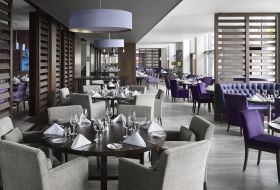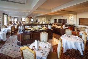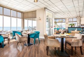 An elegant, relaxed restaurant, light and airy with magnificent views across Liberation Square to the marina. The buffet service at breakfast and dinner offers an ever-evolving selection of seasonal dishes, using local produce wherever possible.